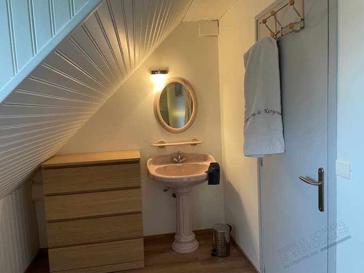 À l'étage, vous découvrirez un placard pratique, une première chambre avec deux lits simples et un placard, une deuxième chambre avec un lit double et une commode, une troisième chambre avec un lit simple, un lavabo et une commode, une salle de jeux pour divertir petits et grands, une salle de bain supplémentaire et un WC avec lavabo.